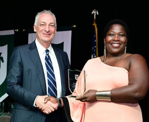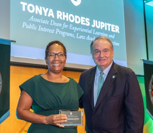 - Dean of Experiential Learning and Public Interest Programs Tonya Rhodes Jupiter (L’94) received the President’s Staff Excellence Award at the State of the University Address for her enhancement of the university’s processes and objectives and demonstration of humanitarianism through a high level of service, loyalty, and trustworthiness.